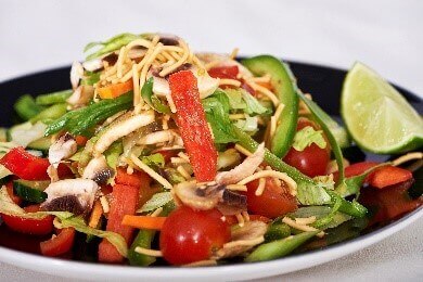 How do you pack 4.5 serves of veggies into one meal, and with the option to add a protein? Crunchy Noodle Salad has it all!